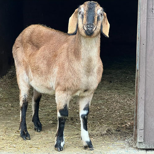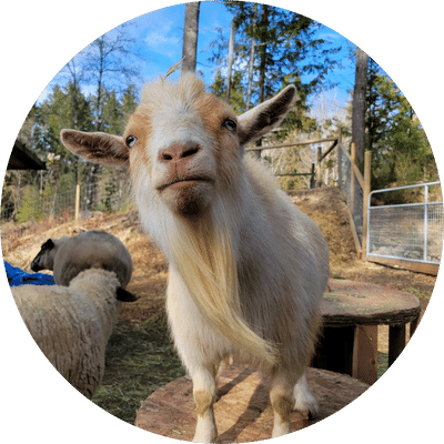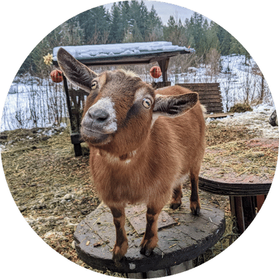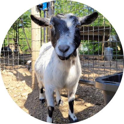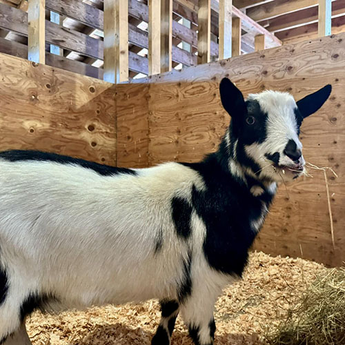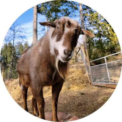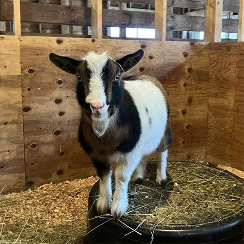 Darwin came into our care in November 2024, after his sister was sadly killed by a bear and his caretakers were afraid the bear would come back. Darwin loves to explore but is a bit cautious and prefers to go with you by his side. Darwin is playful, gentle, and super affectionate. He’s already bonded with his herd mate, Daisy and getting know the newest goat, Timmy.